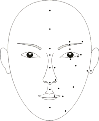 请根据你面部痣的大致位置对照此图,将鼠标放在黑点上面,两侧即可显示结果。