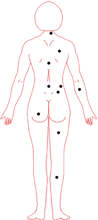 请根据你面部痣的大致位置对照此图,将鼠标放在黑点上面,两侧即可显示结果。